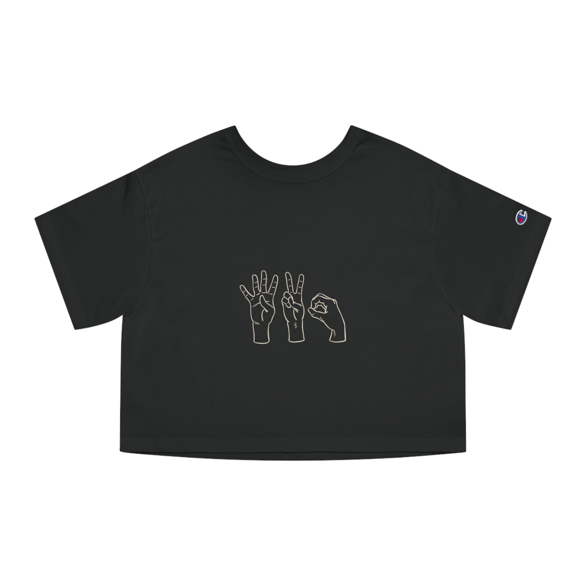 Campion Heritage Cropped T-Shirt with 420 in Sign Language Hand Signs, Casual Women's, Streetwear, Summer Fashion
