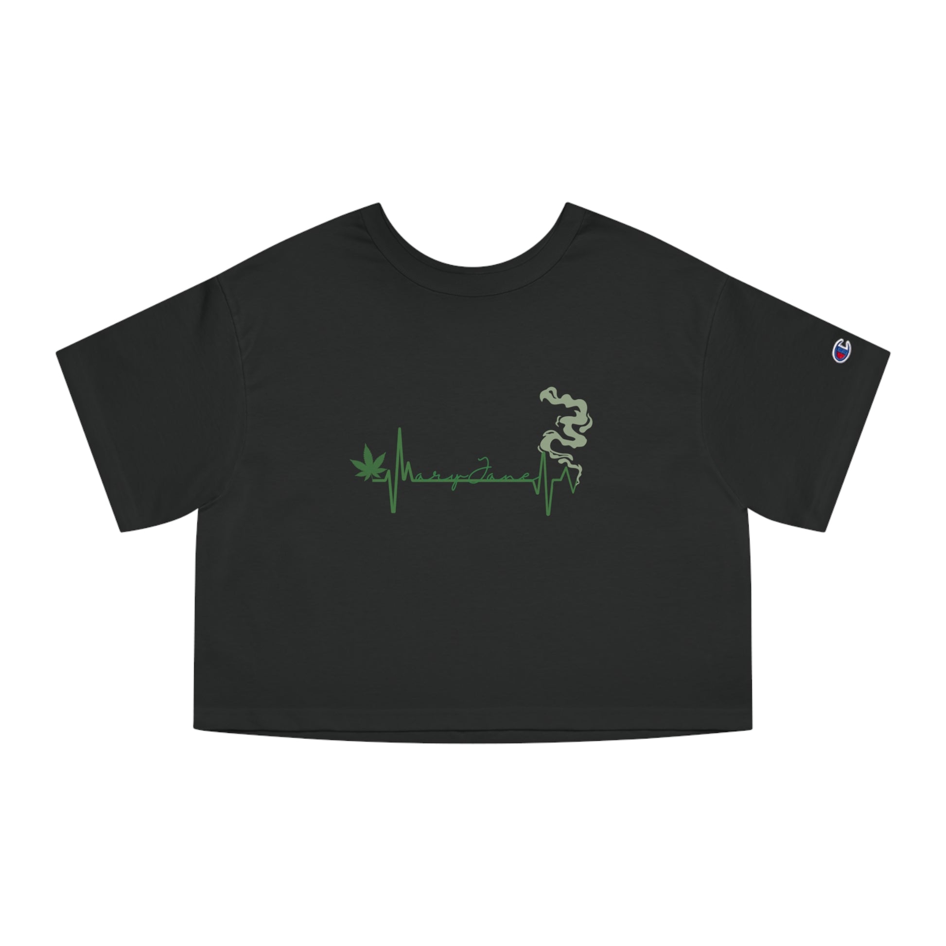 Mary Jane Heartbeat Crop Tee, 420 Weed Marijuana Shirt, Champion Women's Heritage, Pulse, 420 Holiday Gift, Cropped Tshirt, Stoner Apparel