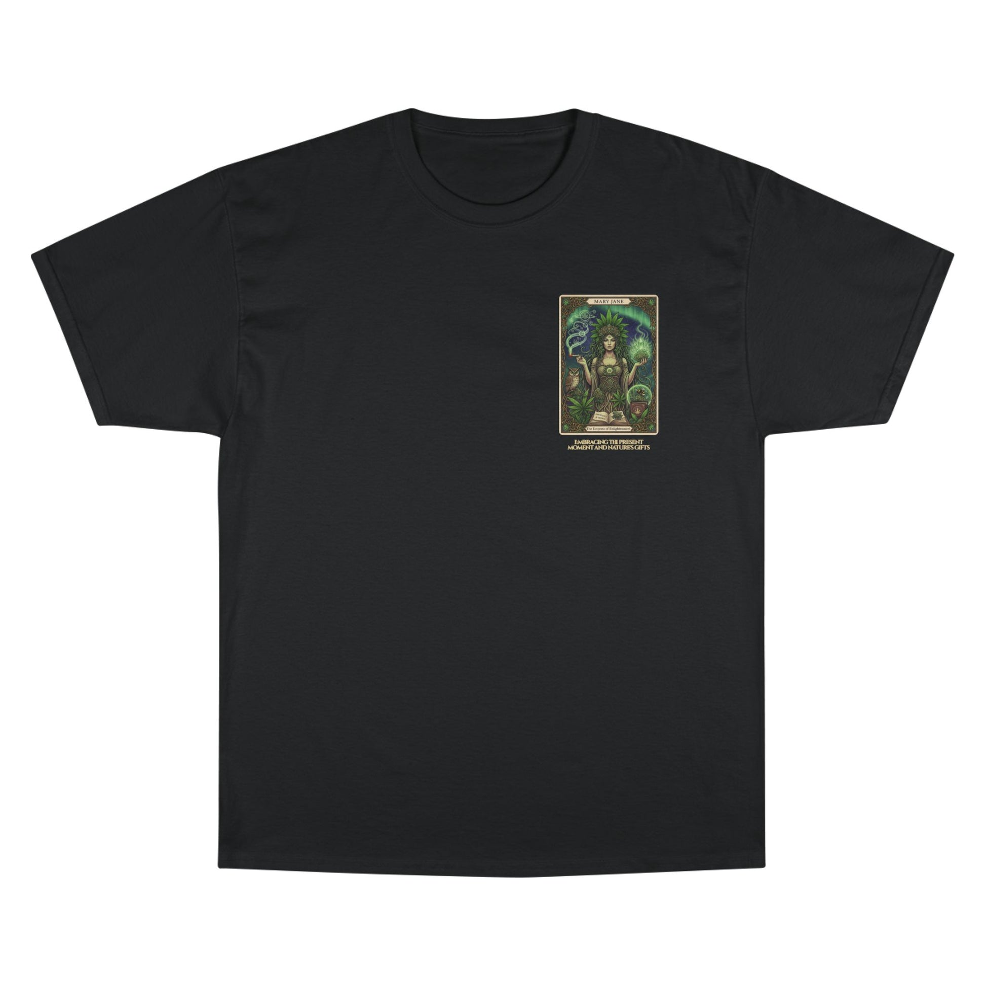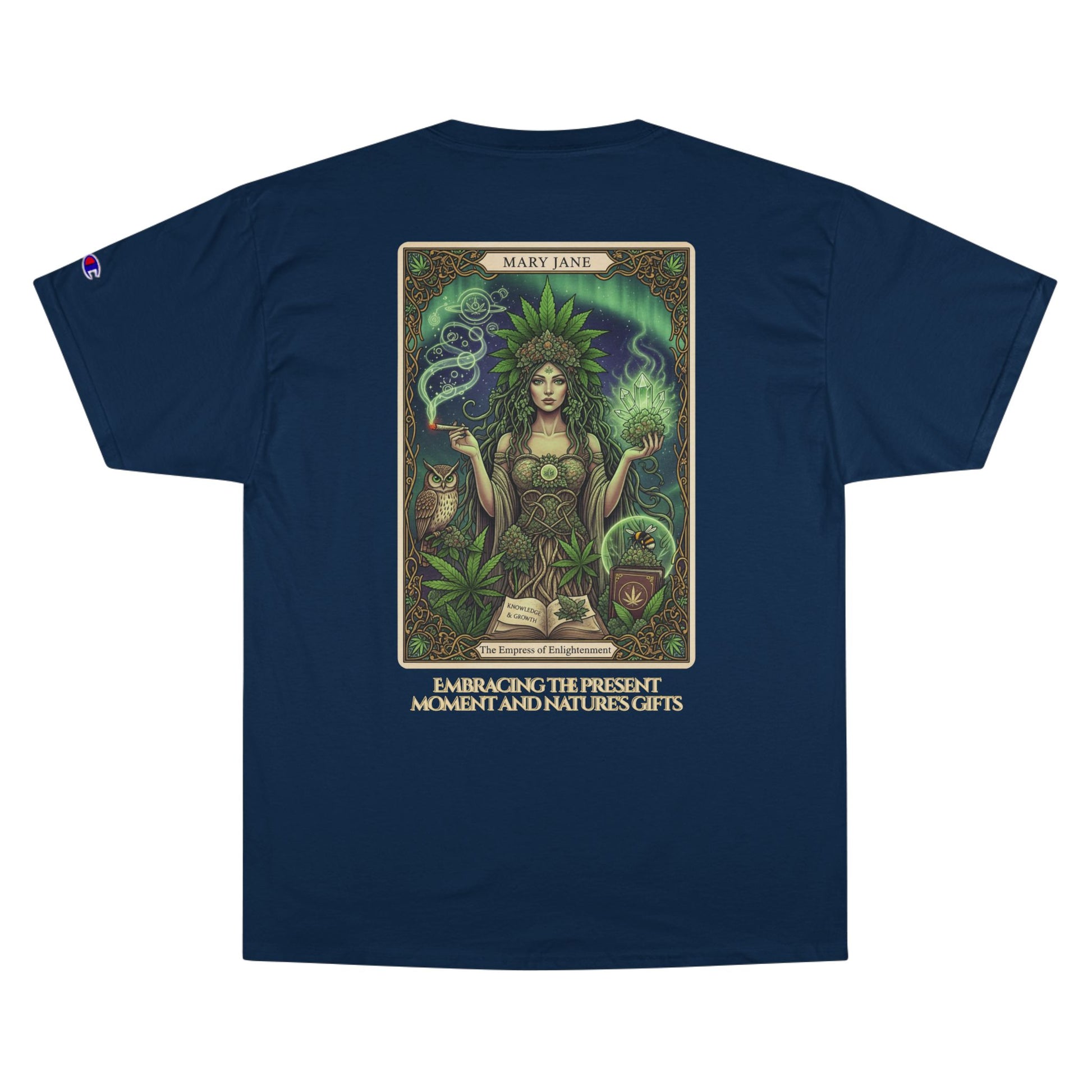 Mary Jane Tarot Champion Cannabis Art T-Shirt, Vintage Graphic Tee, Stoner Apparel, Herbalist Gift, Eco-Friendly Fashion