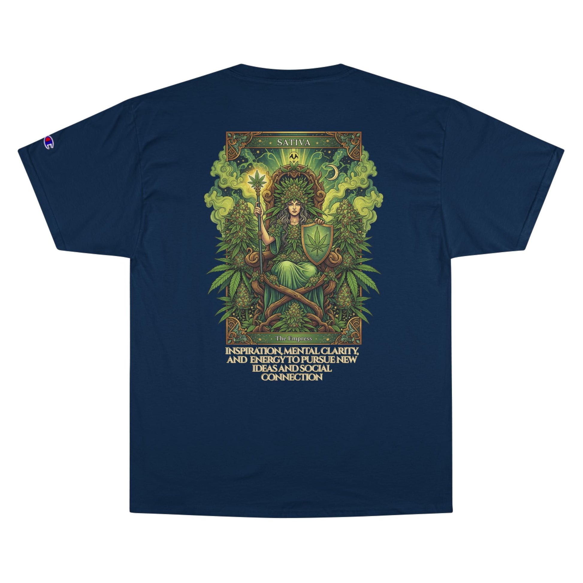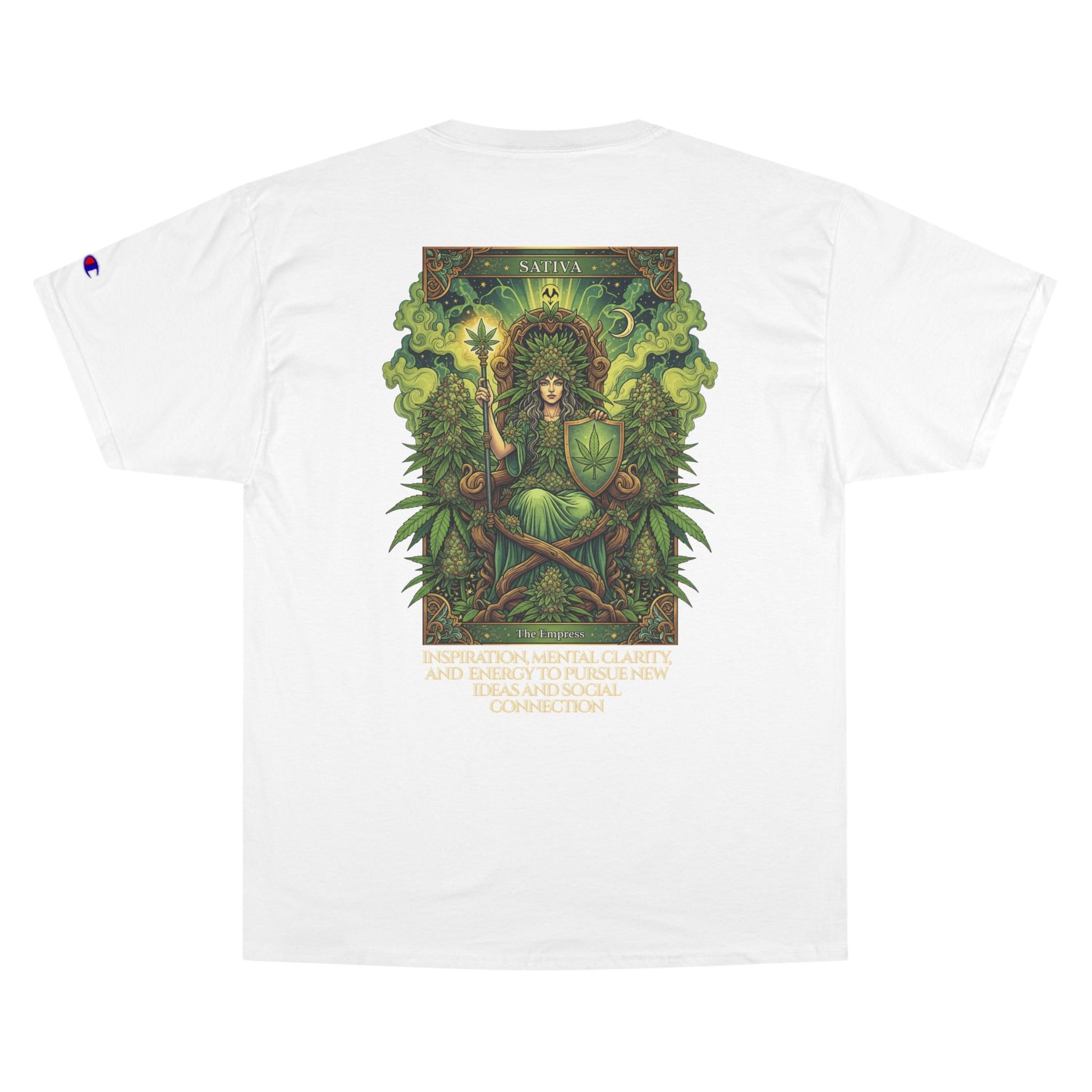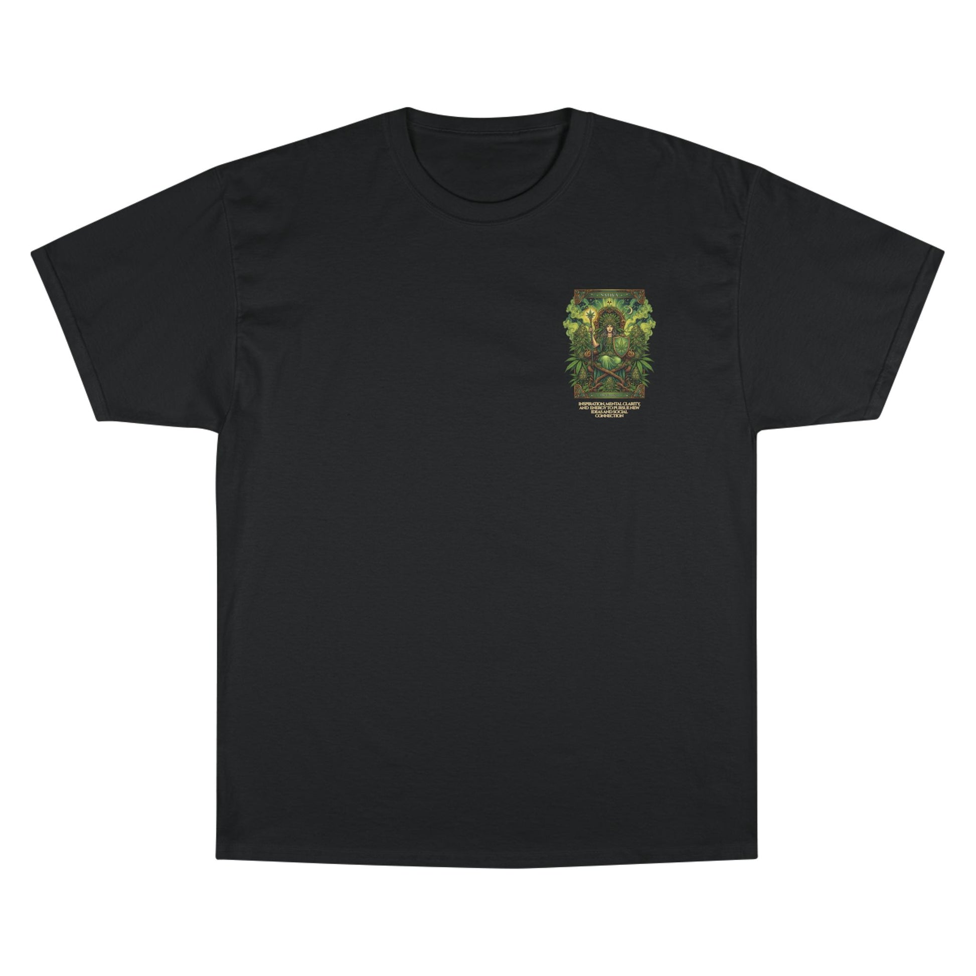 Sativa Mystical Tarot Champion T-Shirt | Nature Lovers Tee, Green Goddess Shirt, Bohemian Graphic Tee, Eco-Friendly Apparel, Mythical Artwear