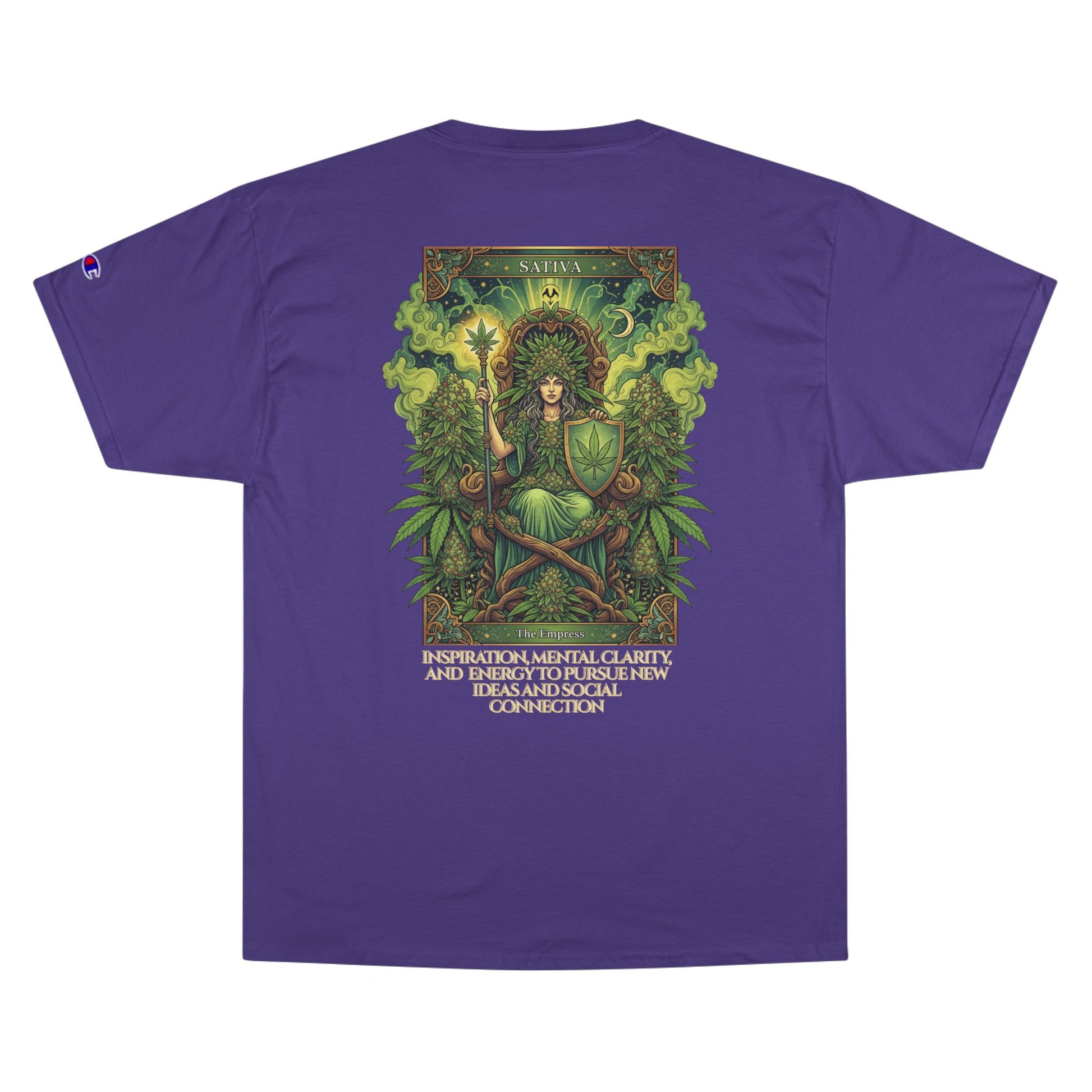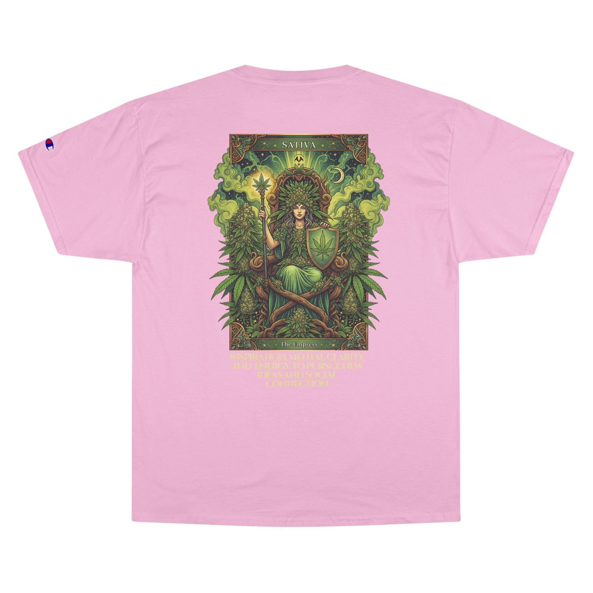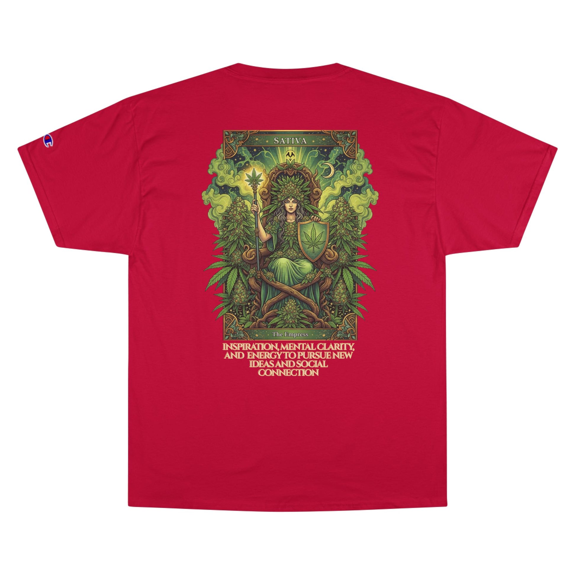 Sativa Mystical Tarot Champion T-Shirt | Nature Lovers Tee, Green Goddess Shirt, Bohemian Graphic Tee, Eco-Friendly Apparel, Mythical Artwear
